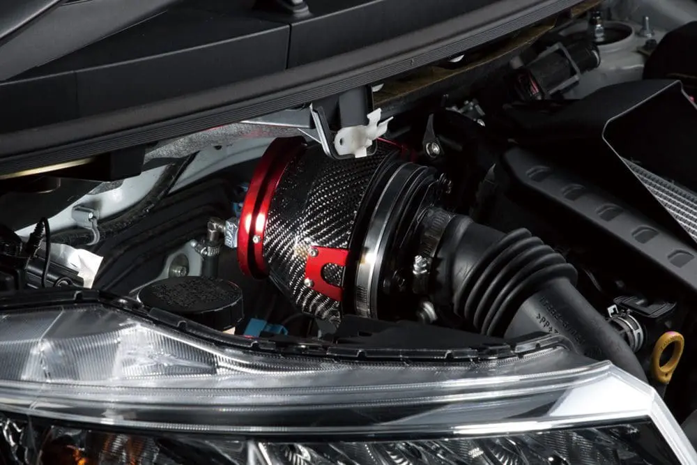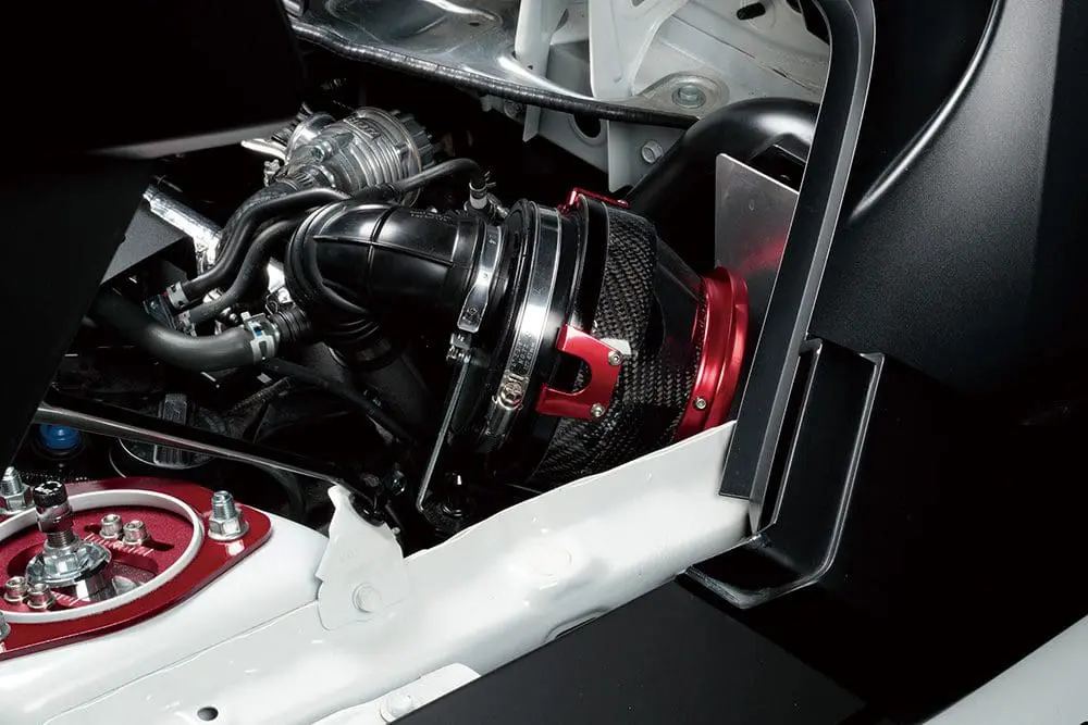 A high-grade model of Blitz core type air cleaner that realizes a combination of carbon cooling shield and stainless mesh filter.