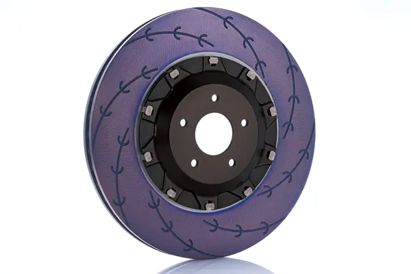 The brake rotor combined with RacingMONO6Rally is an impressive “E-slit” with a long slit that draws a gentle curve and an “E” slit lined up on the long slit. These two slits provide a double shaving effect to keep the pads in optimal condition at all times and further improve braking power. The indicator for replacement is when the long slit on the rotor surface disappears and the letter E appears (※1). In addition, the results of tests on actual vehicles show that it is an excellent match with our ceramic carbon metal brake pads.