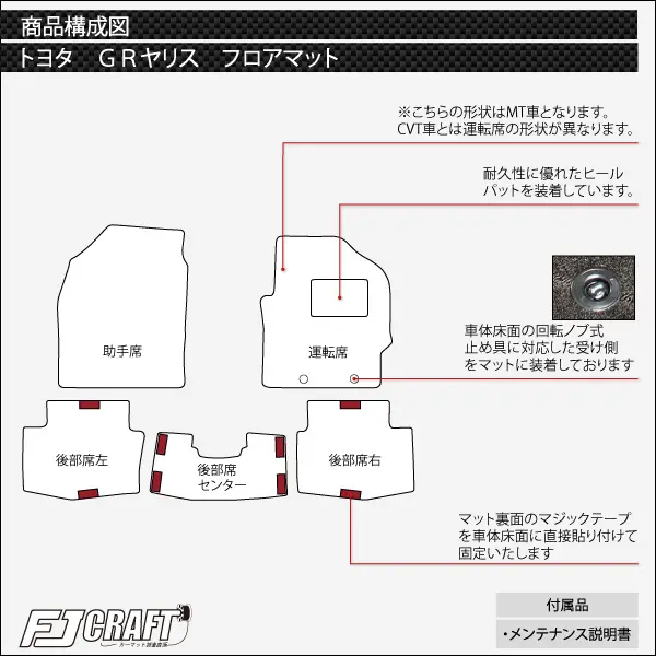 â—† Stop: The receiving side corresponding to the rotary knob type stop on the floor of the car body is attached to the mat.