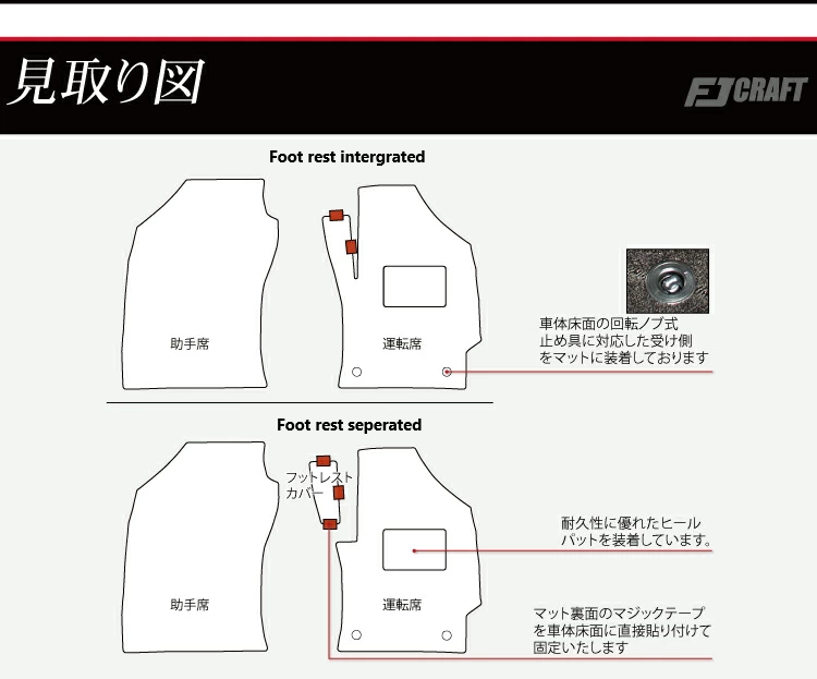 â—† Stopper: The receiving side corresponding to the rotation knob-type stopper on the floor of the car body is attached to the mat.