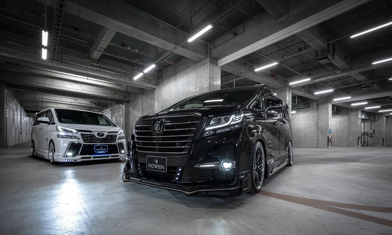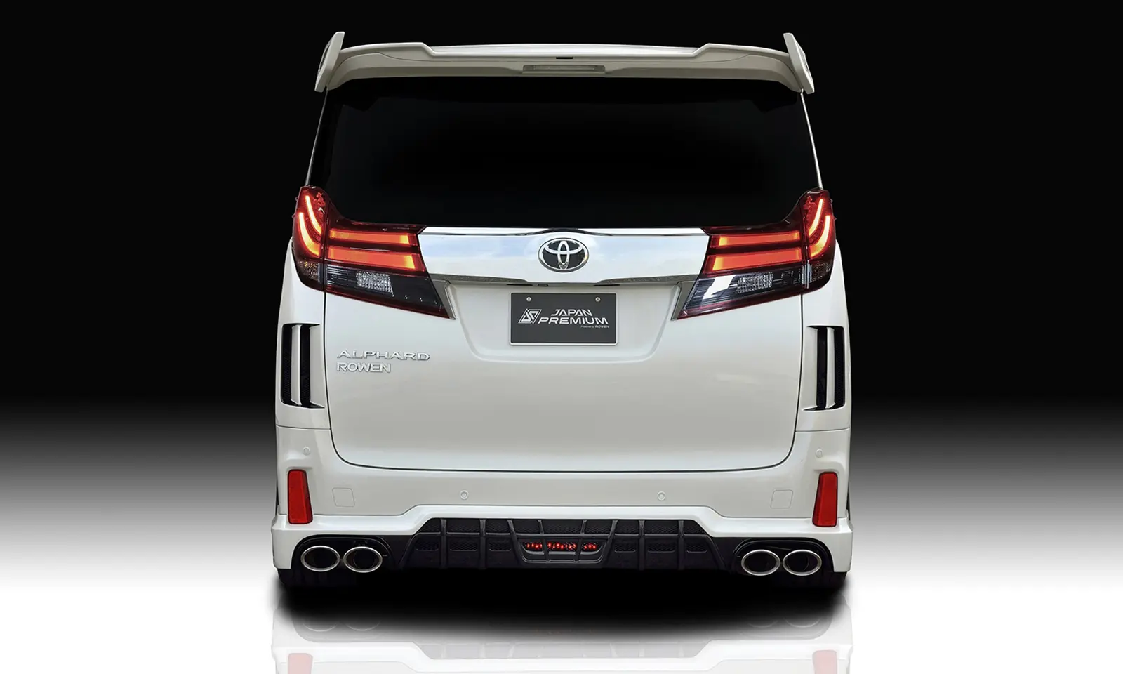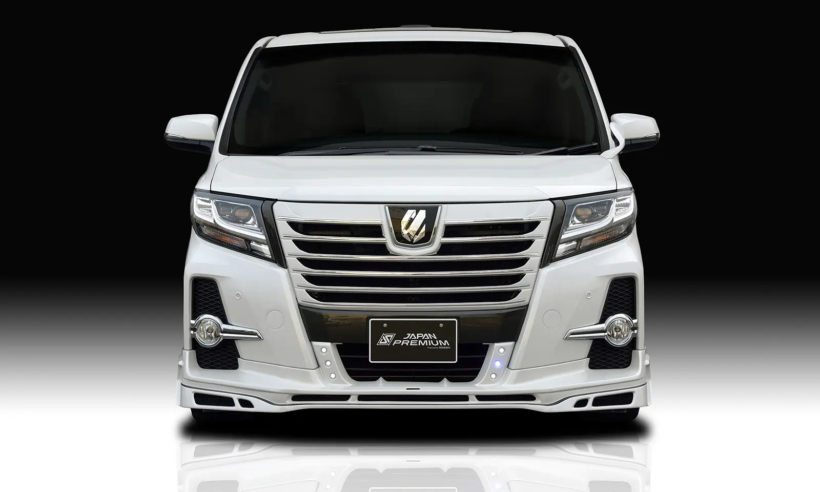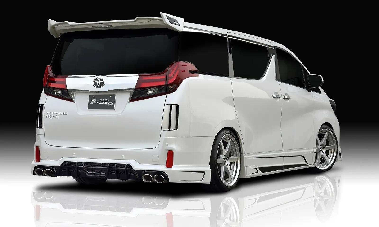 Rowen Body Kit for 30 Alphard includes Front spoiler with LED + Front Grill Face 1 + Side Panel + Rear half spoiler + Muffler attachment