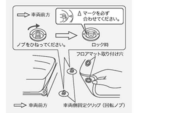 Please use it by fitting the setting clip floor mat mounting hole attached to the vehicle.