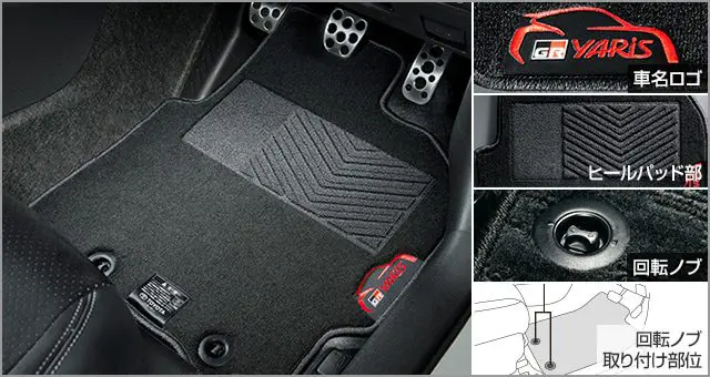 Feature [A device has been devised to fix the floor mat. ] On the driver’s side, the floor mat is firmly fixed with the rotating knobs attached in two places. Prevents the mat from slipping while driving. It can be removed smoothly.