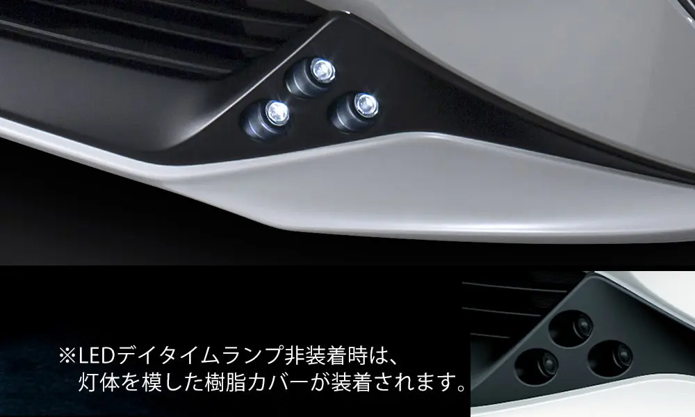 It is a LED daytime lamp with 3 lights on one side that can be attached to the front spoiler Ver.1. It gives more advancedness to the front styling.