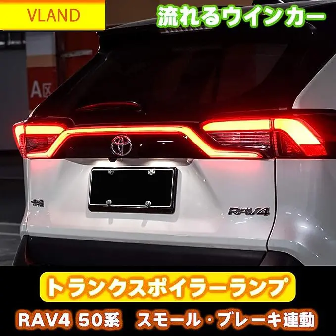 RAV4 50 series penetrating tail, one-line lighting from the rear middle part, turn signal, small, brake interlocking, perfect opening motion lighting